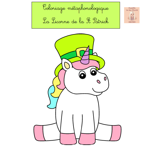Coloriage Métaphonologique La Licorne de la St Patrick : Conscience des sons à l'oral ou à l'écrit