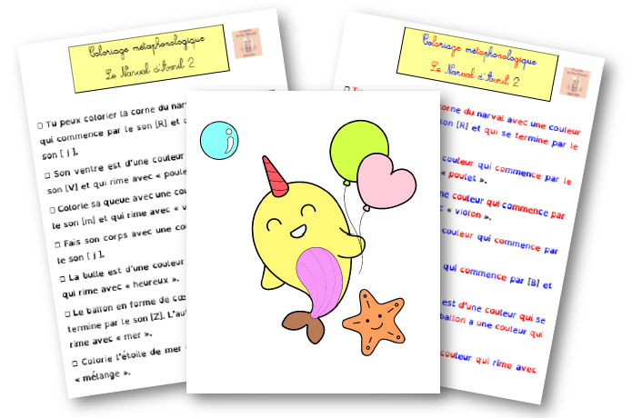Coloriage Métaphonologique Le Narval d'Avril 2 : Conscience des sons à l'oral ou à l'écrit
