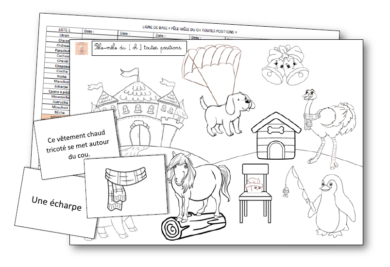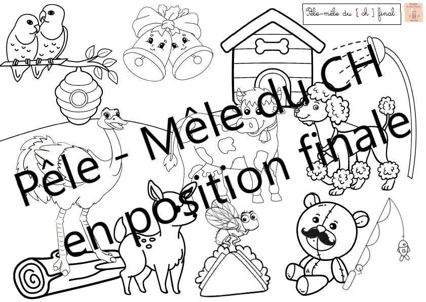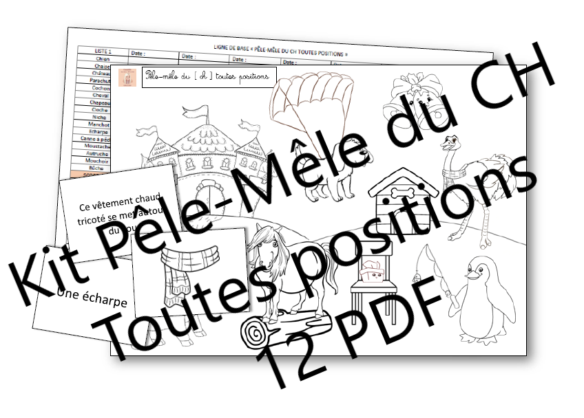 Pêle-Mêle du CH toutes positions - Articulation, Lecture de mots et de devinettes, Cartes images et Coloriage