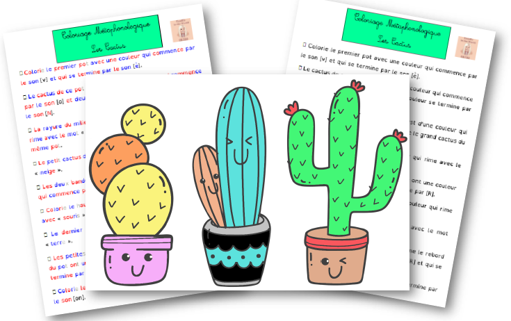 Coloriage Métaphonologique Les Cactus : Conscience des sons à l'oral ou à l'écrit