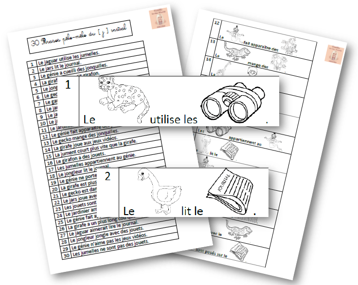 30 phrases Pêle-Mêle J initial - Articulation, lecture