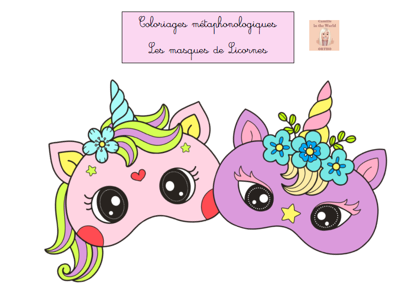Coloriages Métaphonologiques Les masques de Licornes : Conscience des sons à l'oral ou à l'écrit