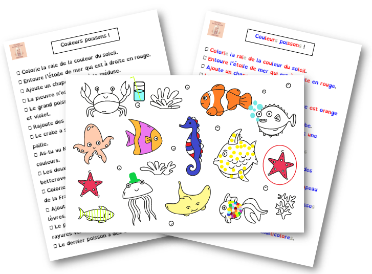 Couleurs Poissons - Lecture de consignes de coloriage