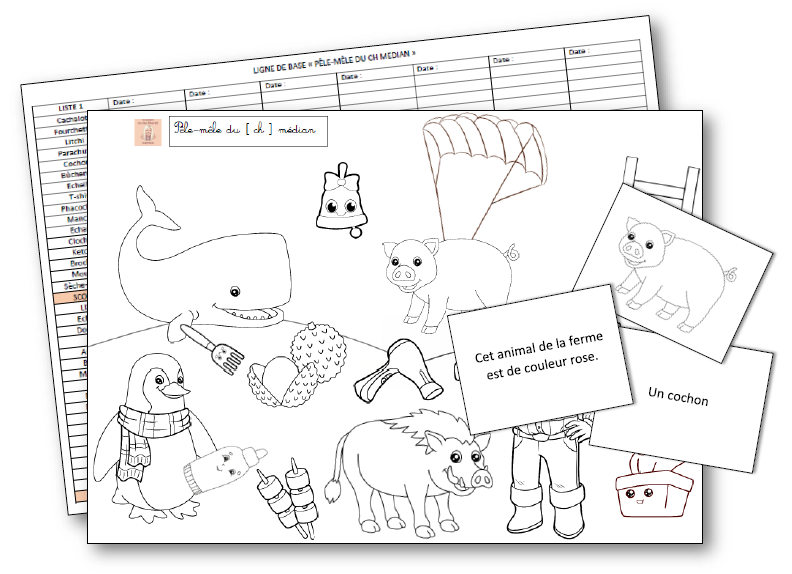 Pêle-Mêle du CH médian - Articulation, Lecture de mots et de devinettes, Cartes images et Coloriage
