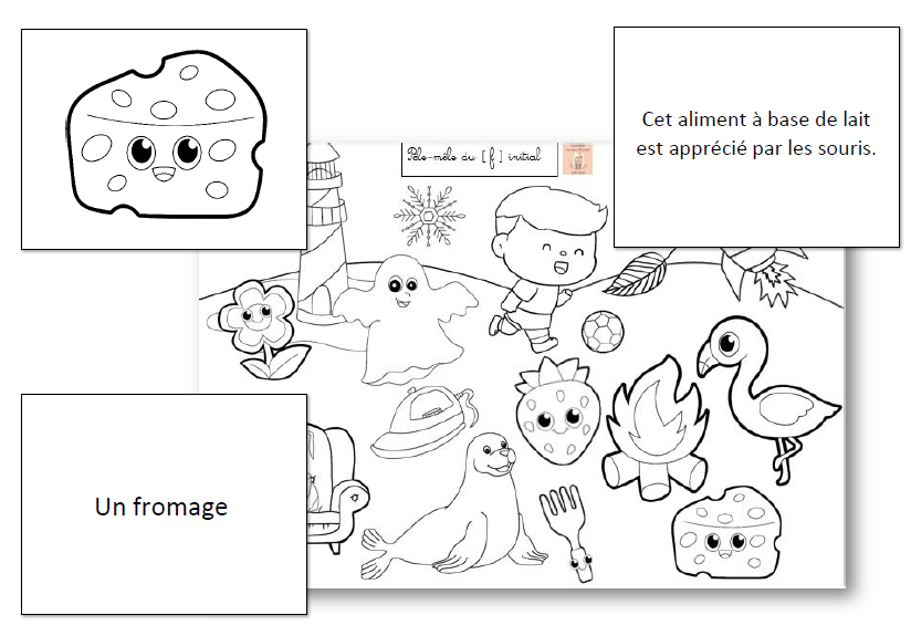 Pêle-Mêle du F initial - Articulation, Lecture de mots et de devinettes, Cartes images et Coloriage