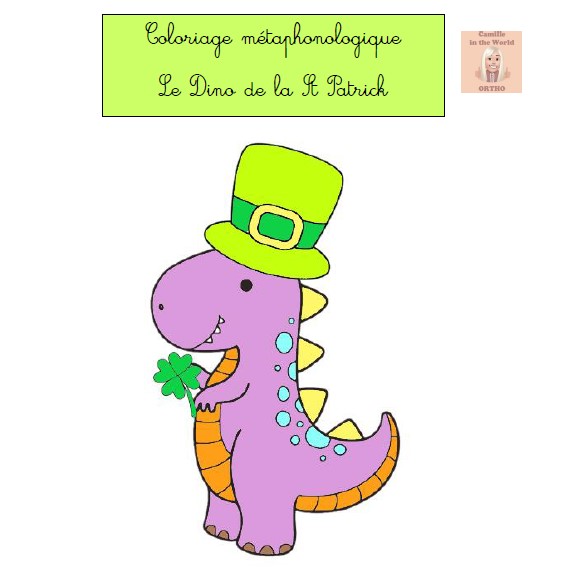 Coloriage Métaphonologique Le Dino de la St Patrick : Conscience des sons à l'oral ou à l'écrit