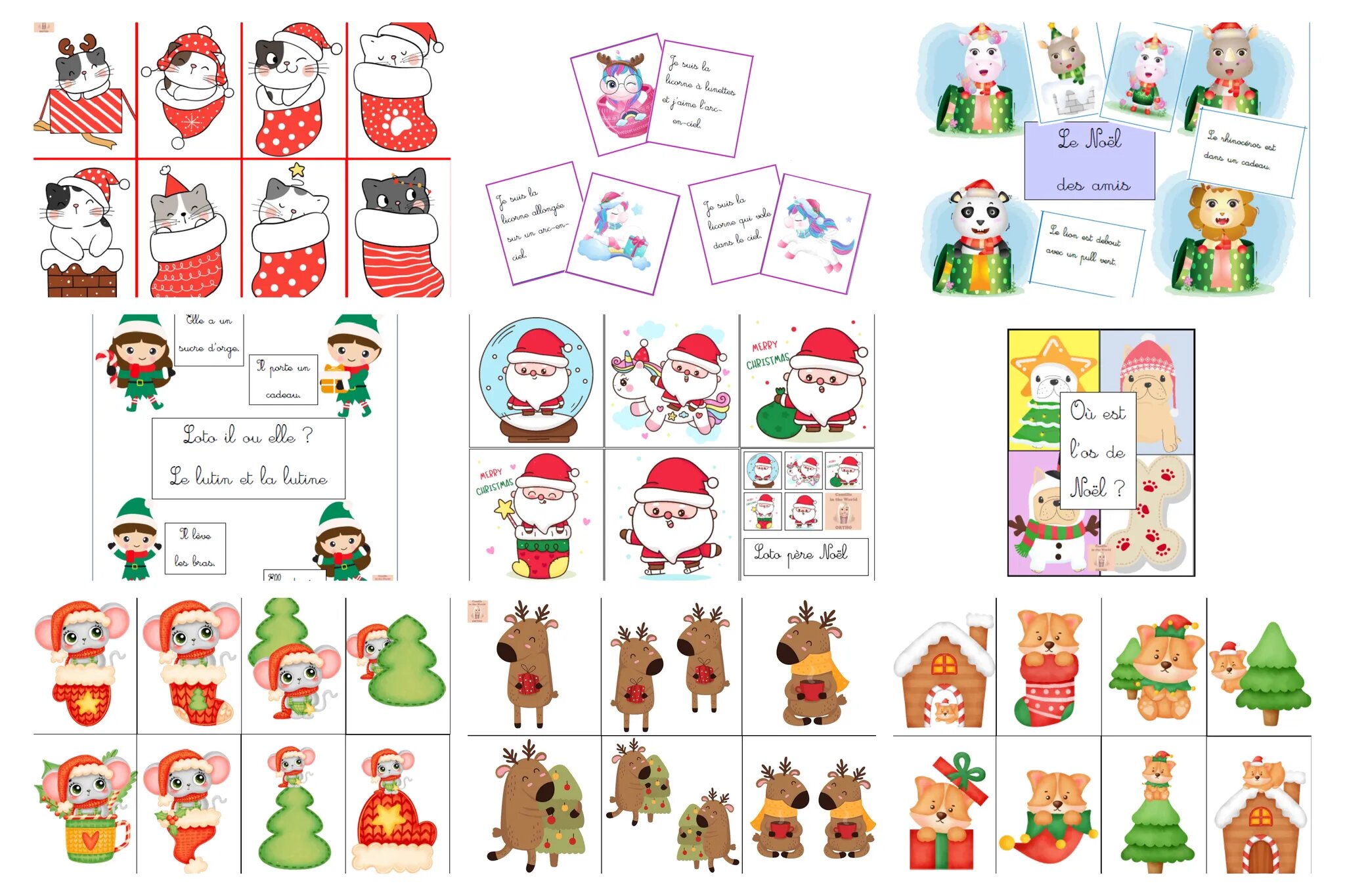 Loto père Noël - Langage Oral petites phrases, Lecture de phrases et de mots