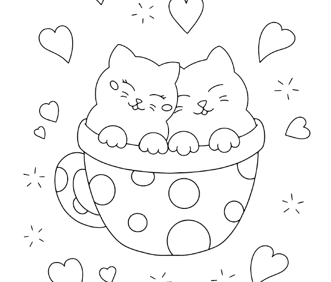 Coloriage Métaphonologique Les chats amoureux : Conscience des sons à l'oral ou à l'écrit